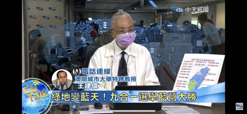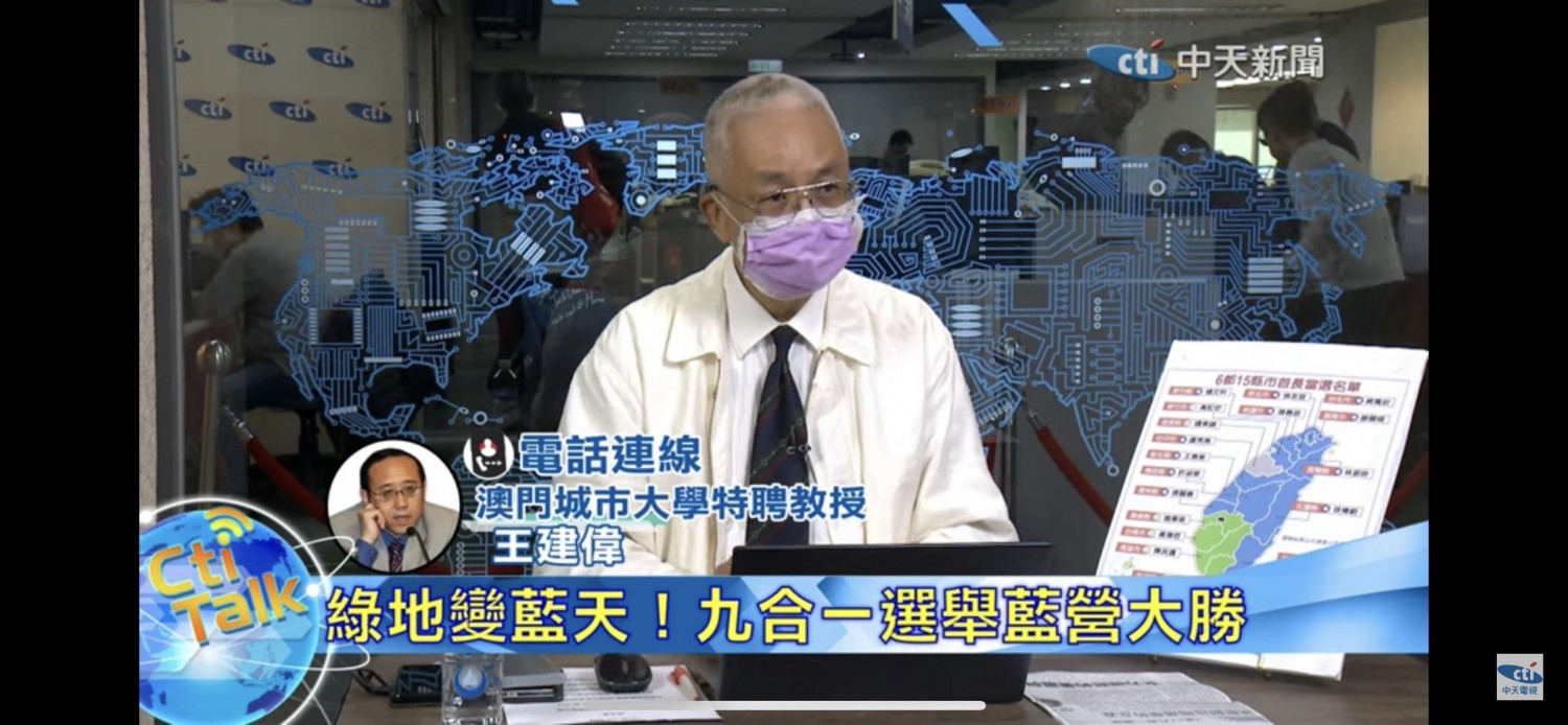 接受台灣中天電視台專訪,談九合一選舉